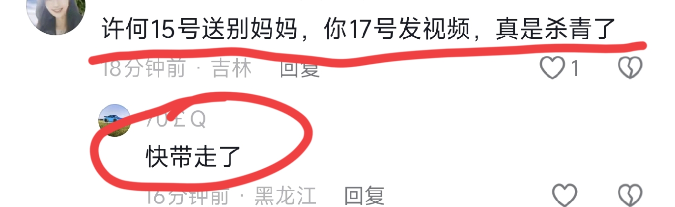 第三个问题略带讽刺意味!许何15号送别妈妈,你17号发视频,真是杀青了,用意何在