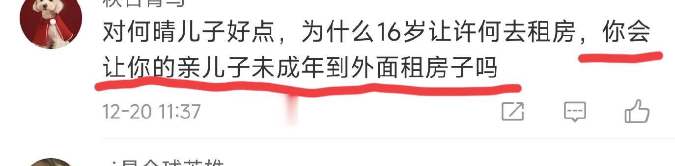 第二个问题 为什么让许何16岁就出去租房住?你会让你的亲生儿子出去租房住吗?