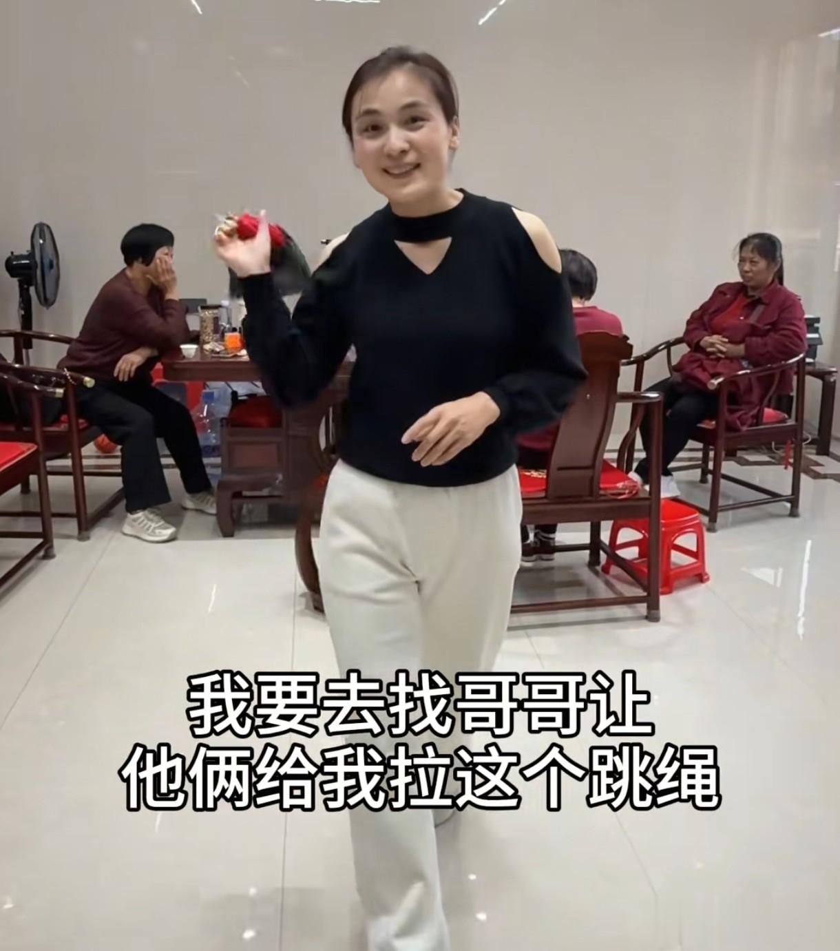 瑾汐拿出之前买的跳绳,要拉着两个哥哥给她摇跳绳。找到大哥时,大哥大吃一惊,玩跳绳,那不是小孩子做的事吗?他小时候确实经常给瑾汐摇跳绳哄妹妹开心,但现在妹妹都是快40岁的人了,还要还跳绳,是不是有些丢人。
