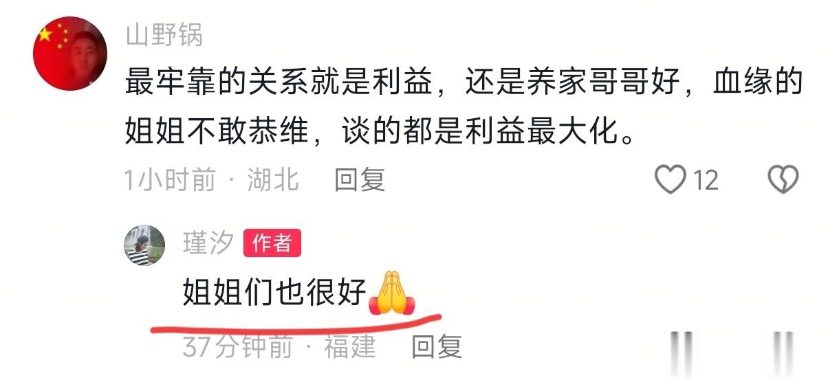 有人说还是养家哥哥好,血缘的姐姐不敢恭维,谈的都是利益最大化。