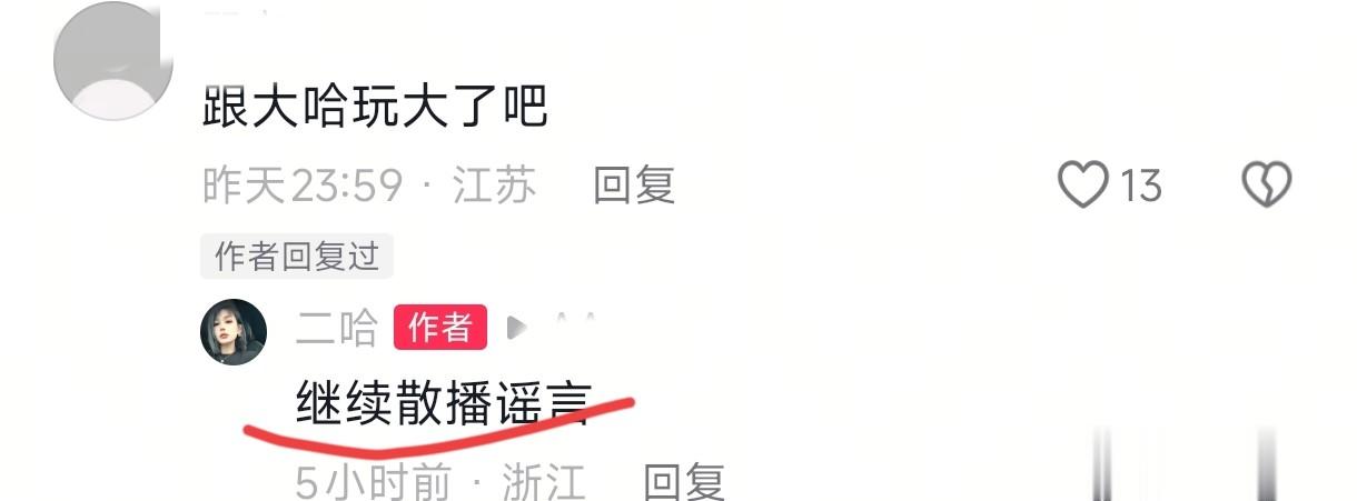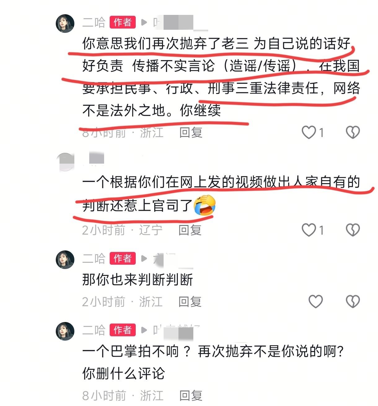 二哈愤怒回怼:你给我继续造谣,传播不实言论,要承担责任的,网络不是法外之地。