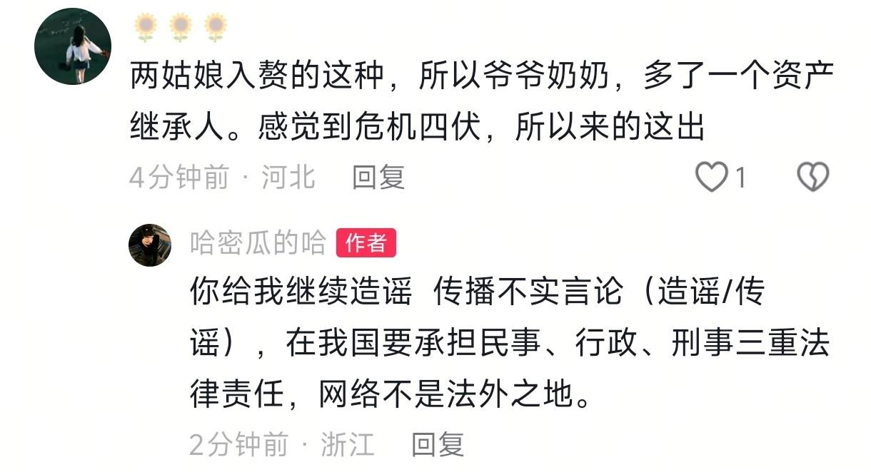二哈同样回复说:传播不实言论,造谣传谣要承担责任的。