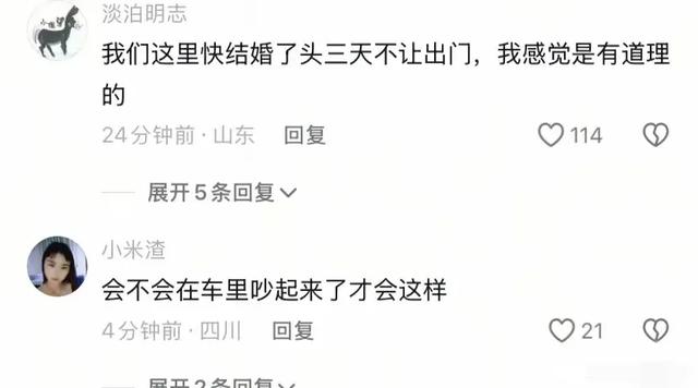 有网友表示,按照农村的习俗,结婚前三天,双方都不宜出门。当然,这种说法并没有什么道理。