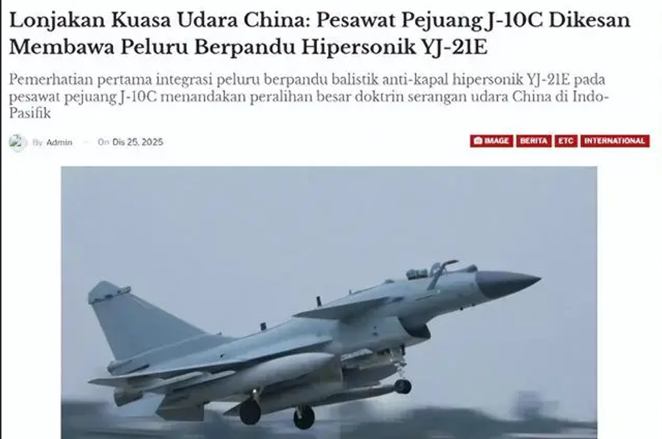 近日,互联网上公开披露的图片显示,歼10C战斗机携带了新型空射弹道导弹。从其双锥体的弹头特征来判断,极有可能在珠海航展上出现的挂载轰6K轰炸机机翼下导弹微型化版,十之八九就是大名鼎鼎的鹰击21(YJ-21)高超音速导弹。