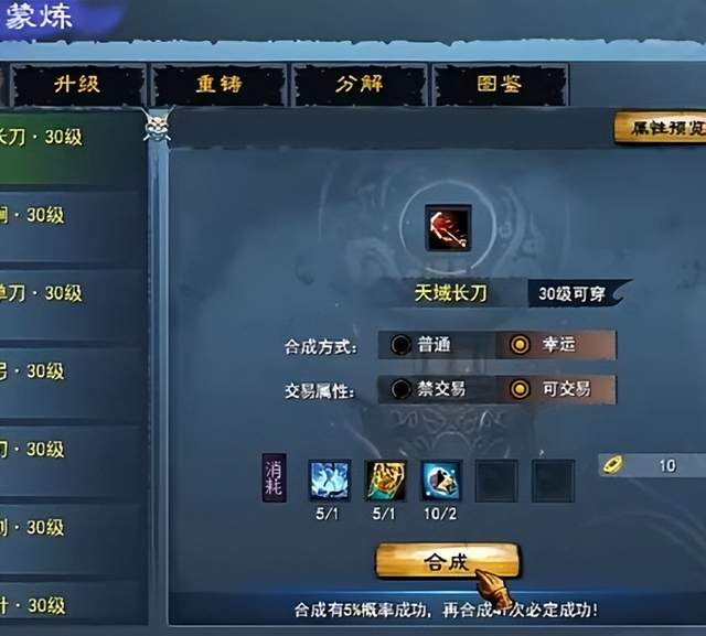 当然,如果空闲时间多想多赚点,那我建议你去卖合成天域武器的材料。因为游戏里的大佬们急着强化,都在赶着合成天域武器提升实力,合成材料的需求很大。