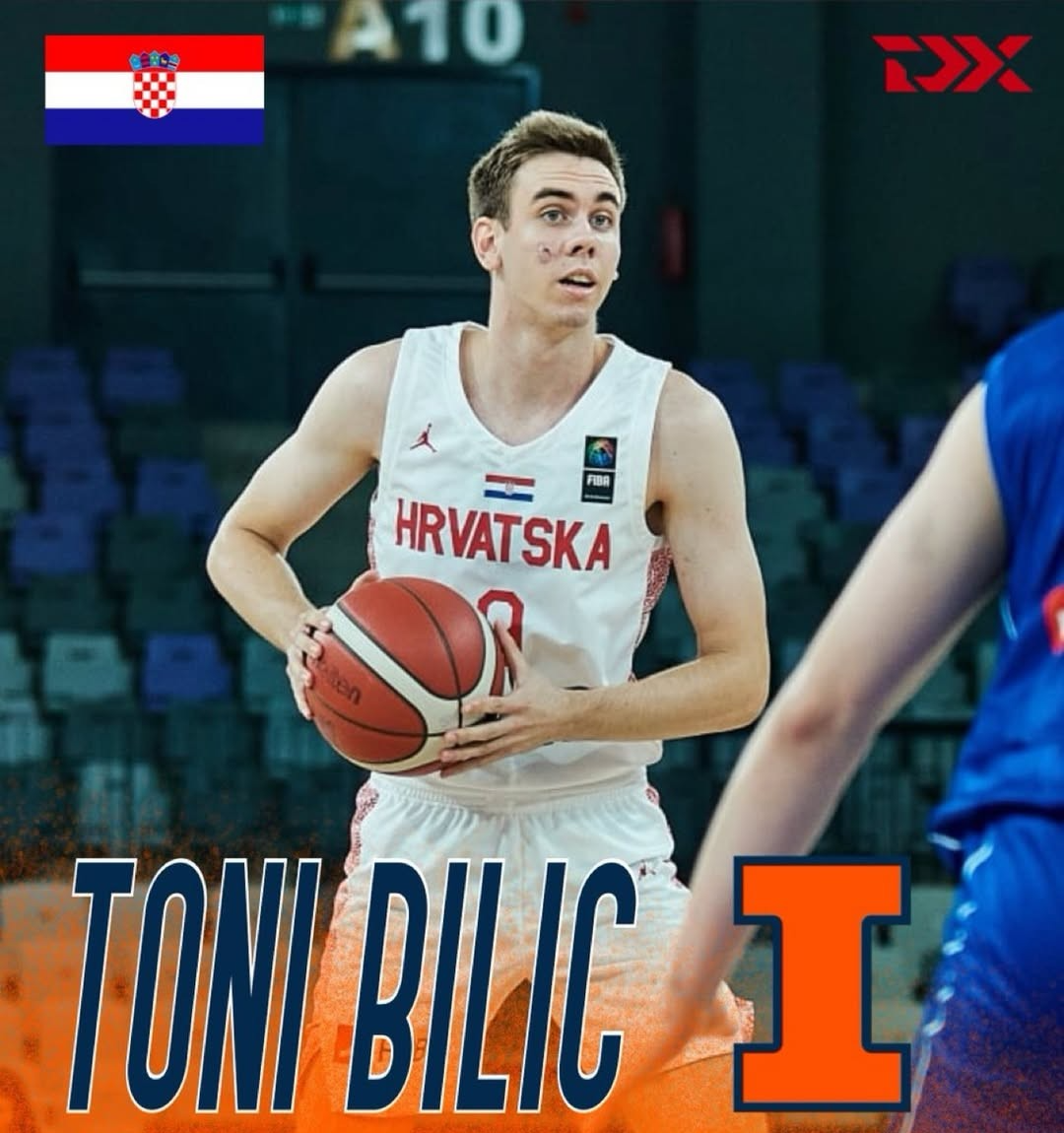 克罗地亚20岁前锋Toni Bilic宣布承诺NCAA伊利诺伊大学,经纪人是Misko Raznatovic,身高6-9(2米06),出生于2005年,他将在本赛季第二学期抵达球队,并且能够立即上场打球,2024年U20欧青赛B组场均得到5.8分4篮板2助攻,生涯早期打过后卫,有一些控球能力。