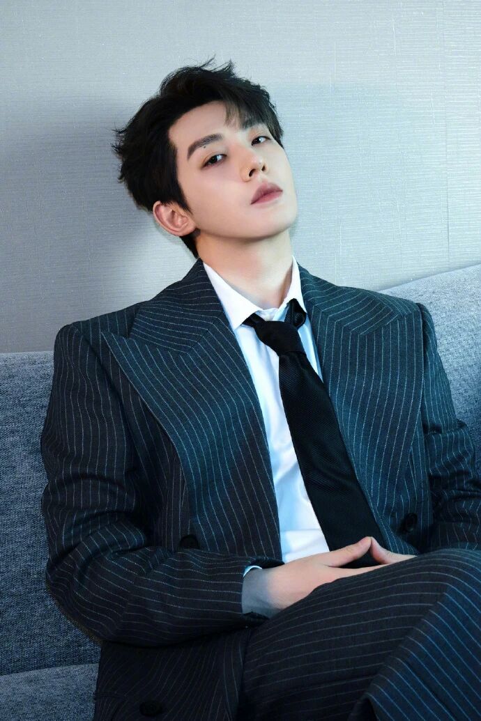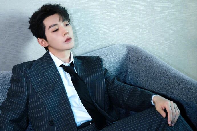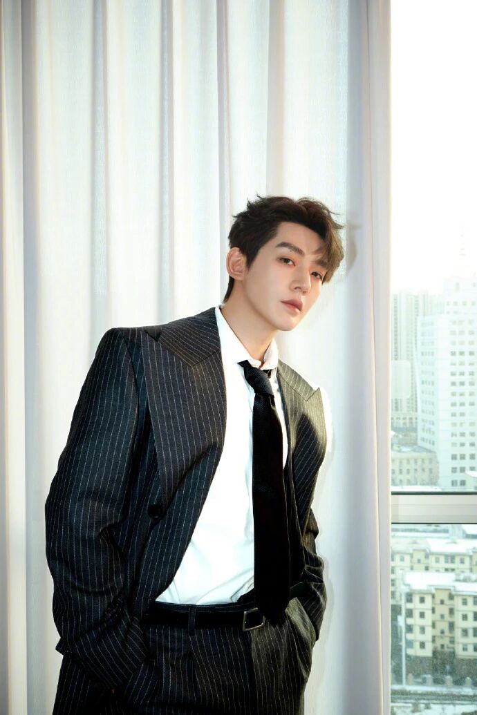 :领带没系成标准的紧致温莎结,松松垮垮垂在领口,甚至带点歪的弧度,直接打破了正装的严肃感,把少年的慵懒气质揉了进去;黑领带的沉稳底色,又刚好兜住了 “不能太随意” 的场合底线,是 “松而不垮” 的分寸;