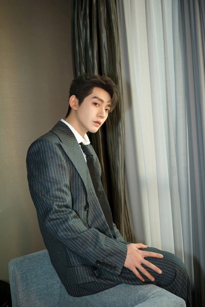 :没选紧身款,是略带宽松的廓型肩线,利落却不卡肩,刚好贴合少年的舒展骨架;细竖条纹的选择也很巧 —— 既比纯色西装多了利落层次,又不会像宽条纹那样显厚重,衬得整套造型 “简而不锐”,撑得起央视舞台的正式度,又没了传统正装的拘谨;