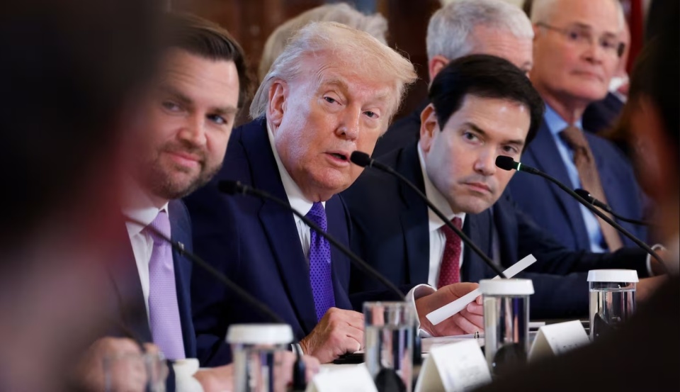 特朗普在与石油和天然气高管的会议中旁观,JD·万斯和马可·鲁比奥陪同。