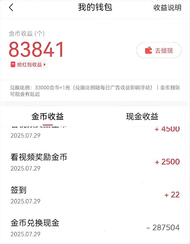 刷视频、看广告、阅读内容都可以获得金币,但它有一个比较明显的特点:金币兑换比例存在浮动。即便每天拿到的金币数量差不多,最终到账金额也可能略有差异。