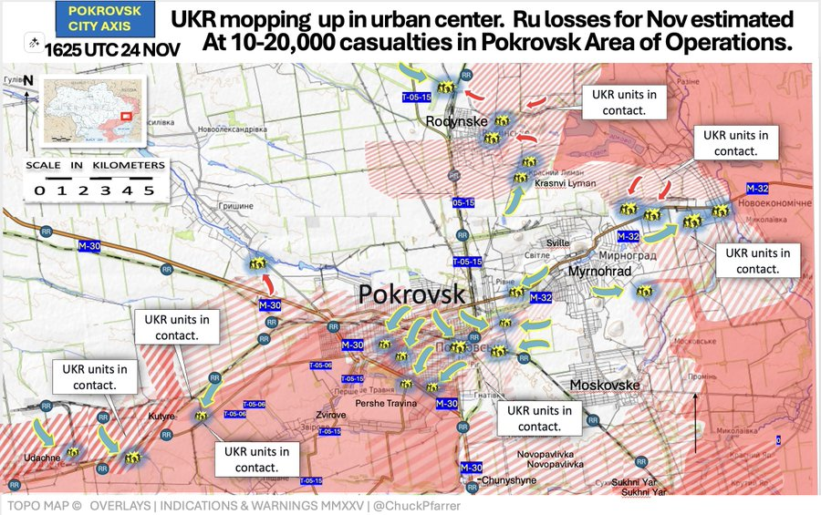 ISW称,俄罗斯部队很可能将完成对波克罗夫斯克和米尔诺格勒的占领,尽管完成占领的时间目前尚不明确。俄罗斯可能会试图利用最终对波克罗夫斯克的占领来制造信息效果,以推进克里姆林宫关于俄罗斯在战场上的胜利是不可避免的论调——这当然并不符合事实。