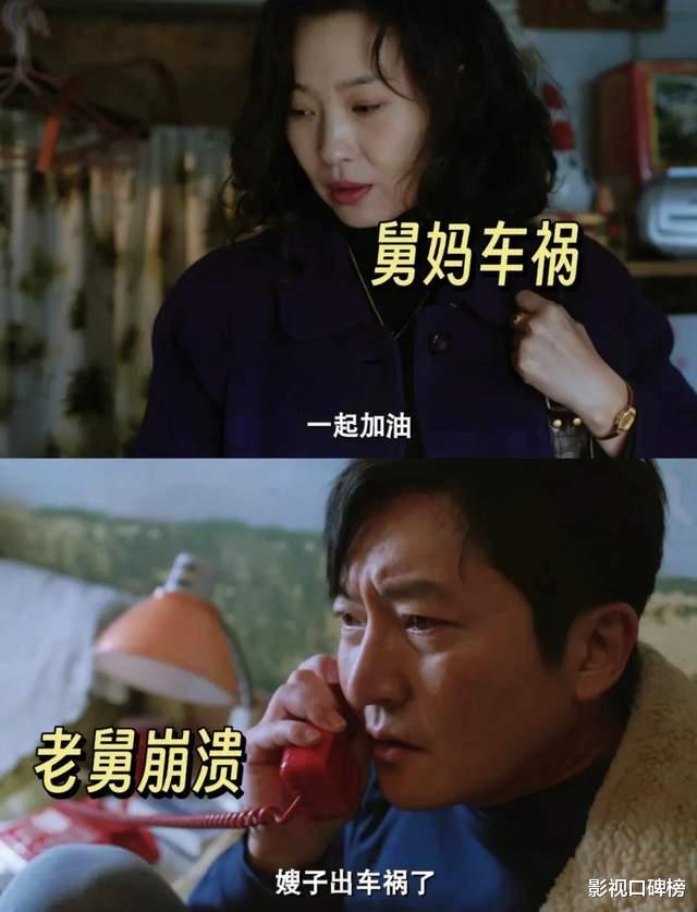 往炕头上一坐,盘着腿,手里干着活,嘴里念叨着家长里短,那种感觉太到位了,这才是生活化表演。她对着郭京飞演的老舅,嘴上从来不饶人,老舅一有啥不靠谱的想法,她立马就怼回去,方言土话张口就来,眉飞色舞的,特别有生活气息。老舅不管怎么折腾,考律师、卖眼镜、搞批发,一次次把钱亏进去,她一边骂着败家,一边还是把家里的存折掏出来给他。观众都说她是老崔家真正的“定海神针”,感觉有她在,这个家再难也散不了,日子也有盼头。
