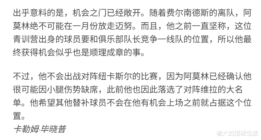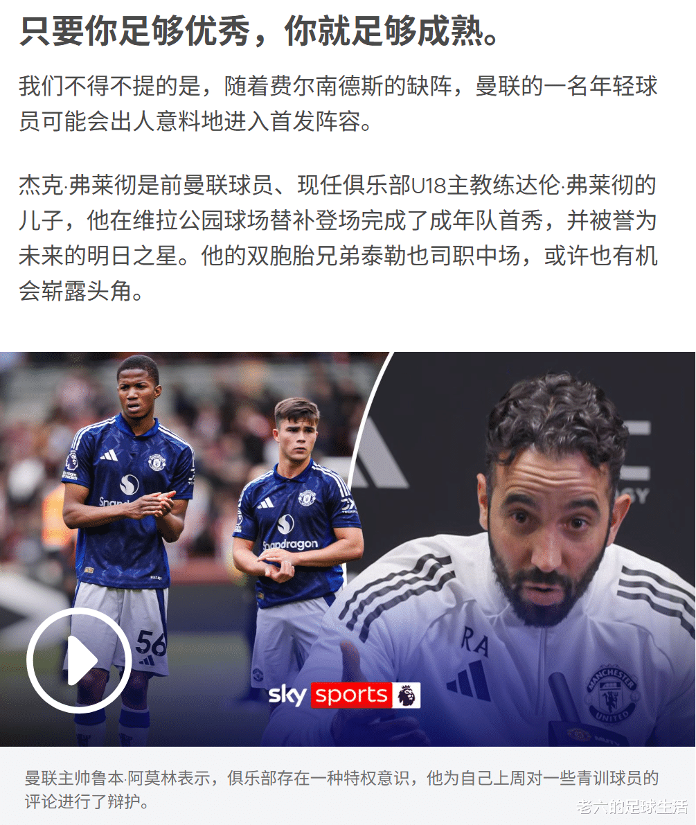 因此赛前阿莫林暗示可能会让杰克·弗莱彻这位曼联名宿达伦弗莱彻的儿子上场弥补中场的空缺,上场与维拉的比赛他已经替补出场完成了自己的首秀。