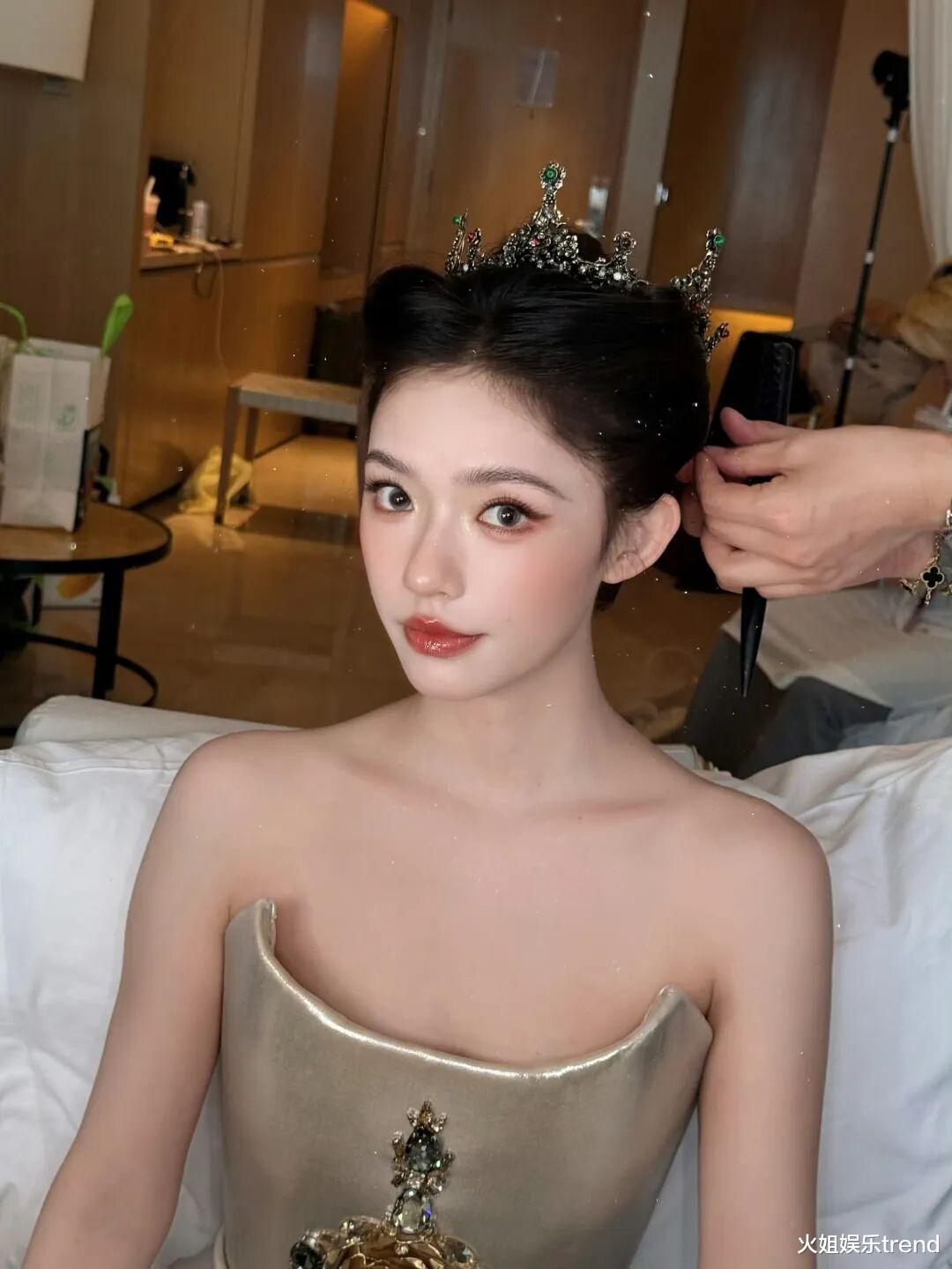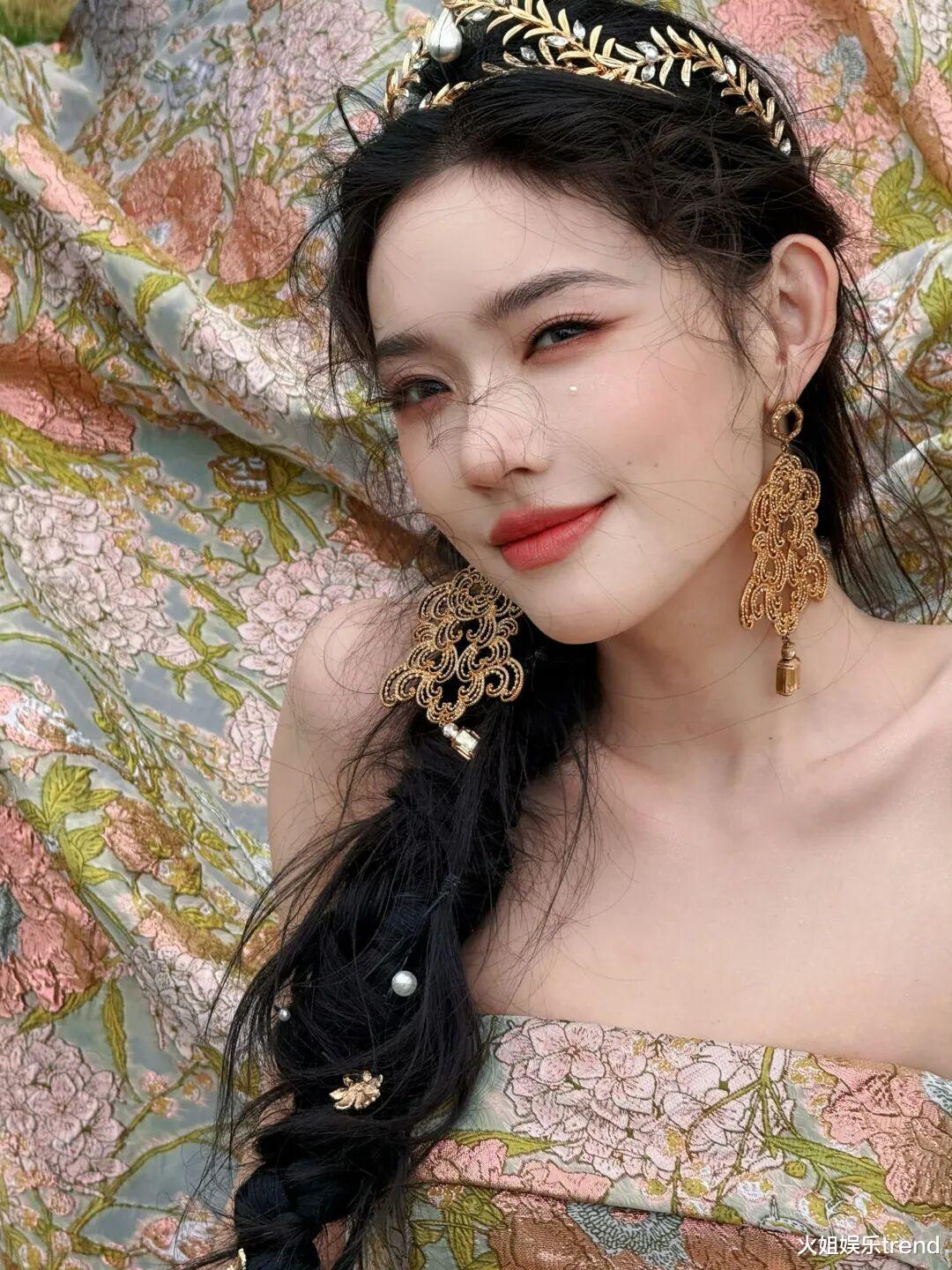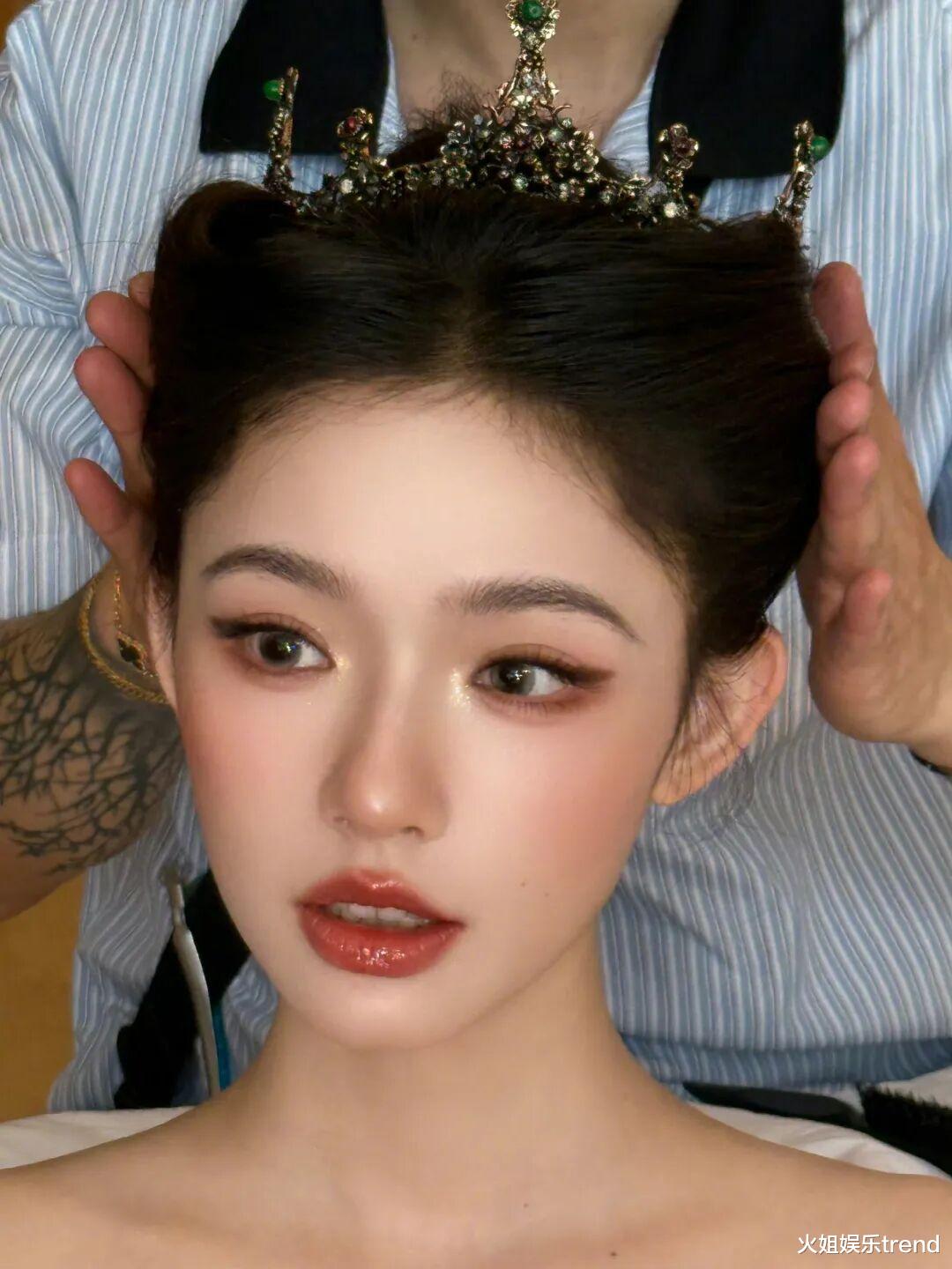 这套造型很独特,有点像“美艳版”西方公主的造型。
