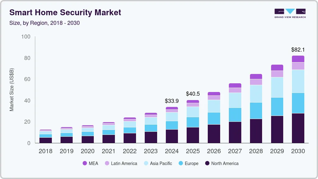 而家庭安防领域则迎来了爆发式发展,在2024年其市场规模已达到339亿美元,预计将在2030年突破821亿美元,市场前景十分广阔。