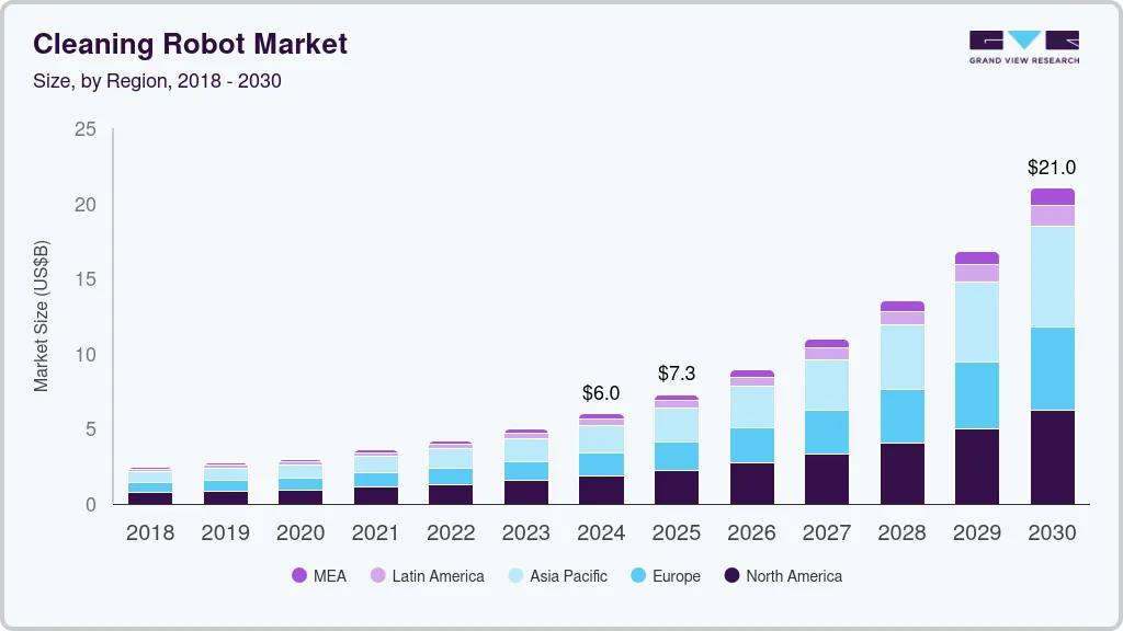 据Grand View Research的数据显示,2024年全球智能清洁设备市场的规模估值为60亿美元,预计到2030年将达到210亿美元,期间以高达23.7%的复合年增长率保持稳定增长。