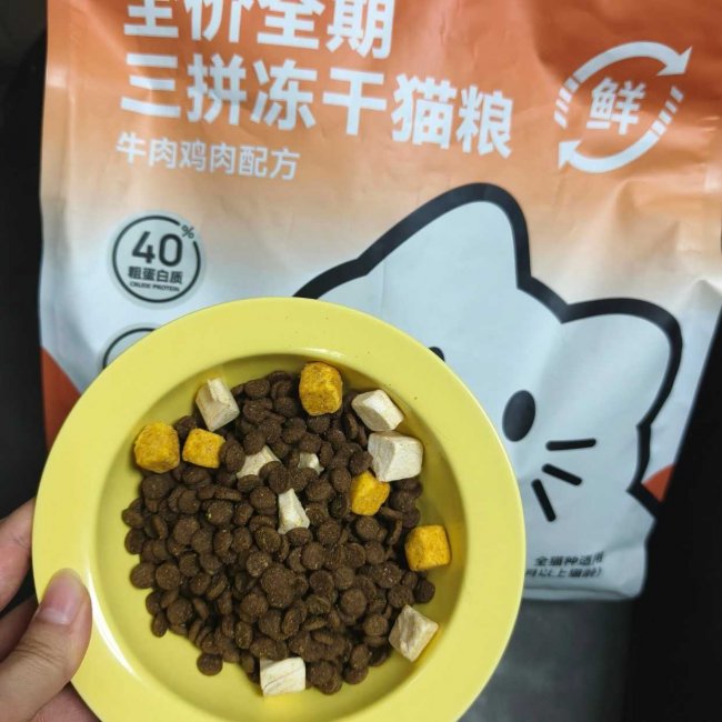 我家猫有点挑食,但不是很严重的那种,但换这个粮的第一天,我刚倒进碗里,它就凑过来开始埋头猛吃,那咔嚓咔嚓的声音听得我都馋。我研究了下,应该是鸡肉的温和香气混着牛肉的浓郁香气,对猫吸引力大,再加上里面实实在在的冻干块,口感特别丰富。官方说初食率超95%,我看一点都不假,反正我家猫是一见倾心。我现在早晚各加一次粮,自有采食的喂的,每次都能光盘,吃得比之前还多。