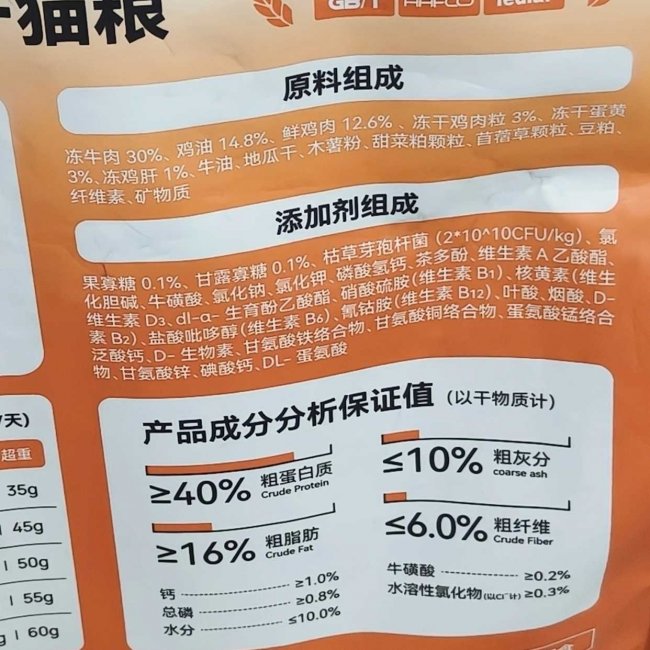 先是必须考虑安全性,毕竟是吃进肚子里的,不安全可就遭了。它家配料表很清晰,没有模棱两可的字眼,华测的第三方检测报告,找客服要能查到。肉源也放心,和中粮、双汇一个厂的人食级原料,山东汉欧大厂生产,品牌还有人驻场检测,算是有三重保障,喂着放心。