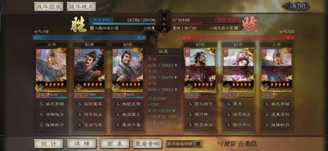 一测结束了,翻了半天战报,好消息是因为一测效果不理想,下周24日还会测试服2测,还可以给大家截图战报。1.SP马超+沮授+许攸。部分兵力对等的战报,SP马超玩弓兵的可塑性也是蛮高的,沮授和雁行阵的搭配能拉满控制效果。