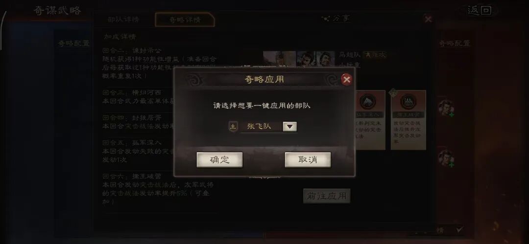 汉剧本的奇略卡增加了一键复制,大家通过战报查看时,喜欢谁的奇略卡排序,可以按钮“前往应用”一键复制到自己的已有阵容,为玩家大大减负,不用费脑研究了,直接照搬,太方便了。
