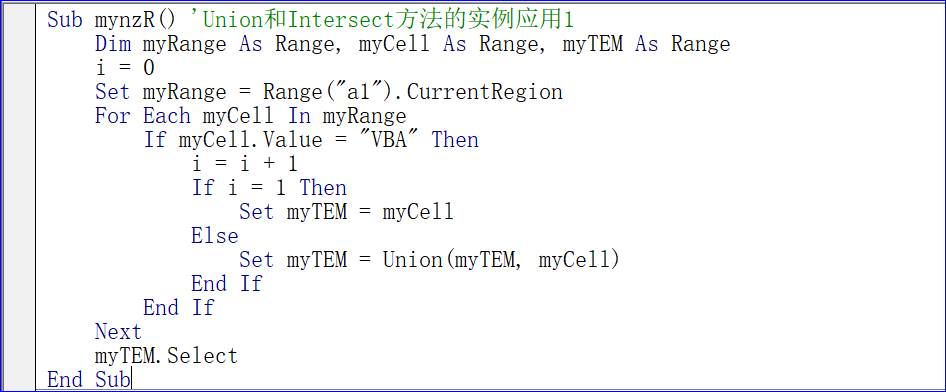 Sub mynzR() 'Union和Intersect方法的实例应用1