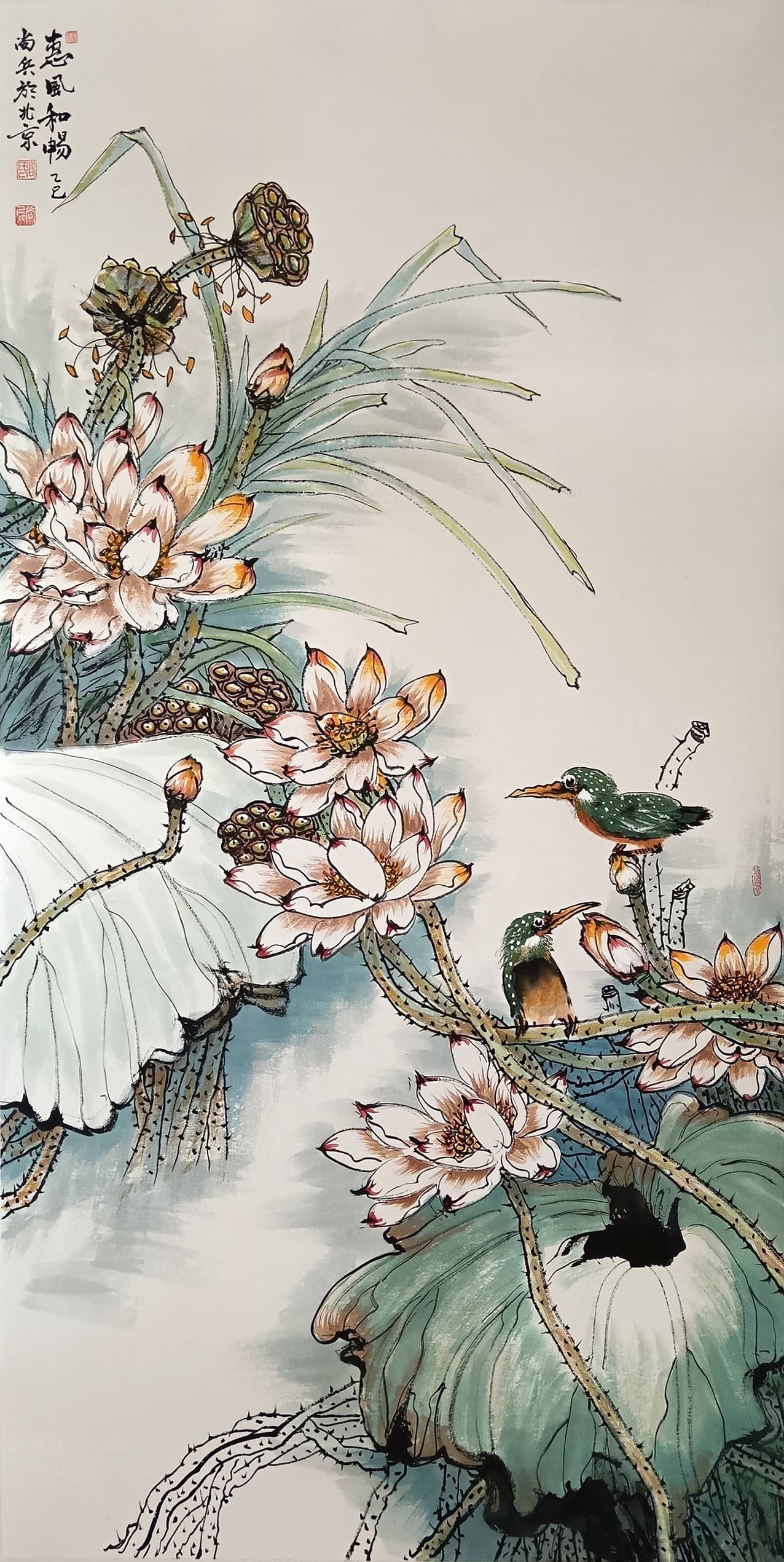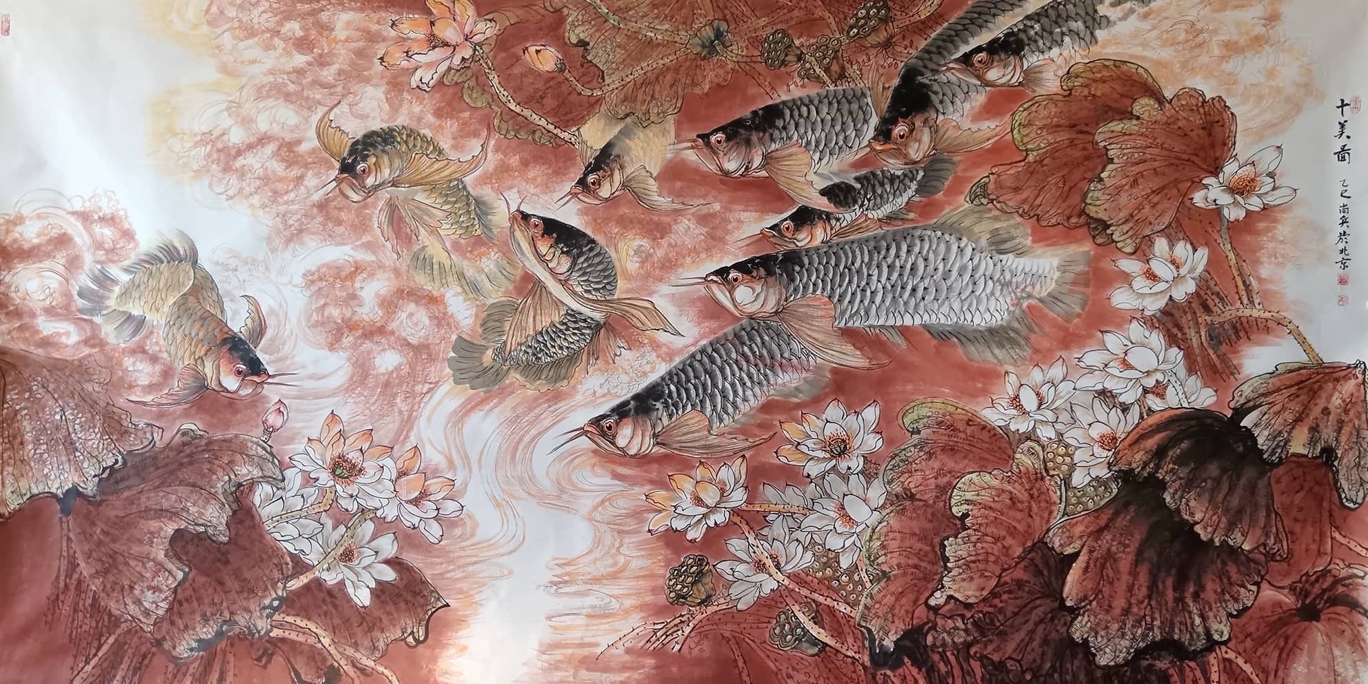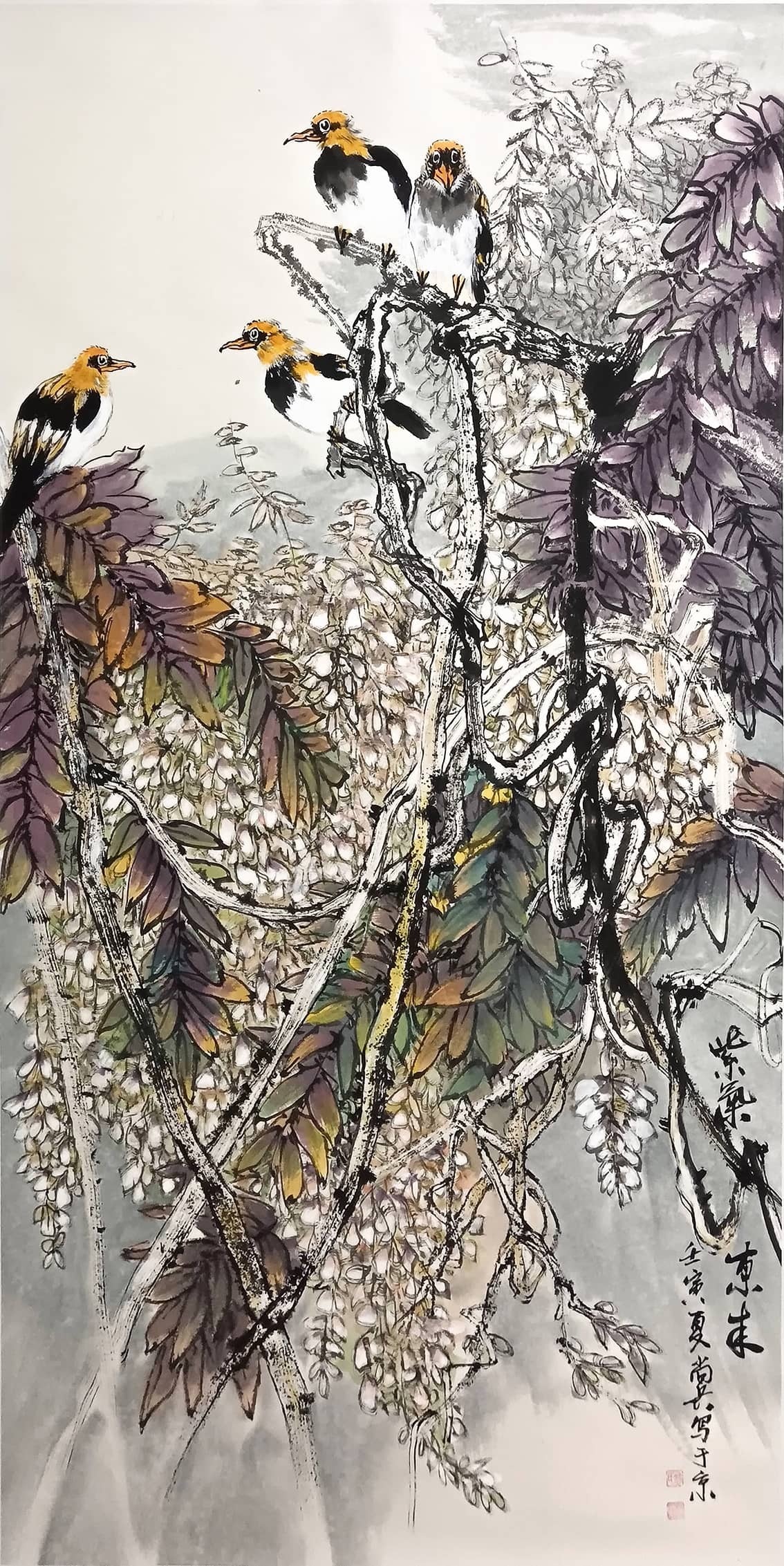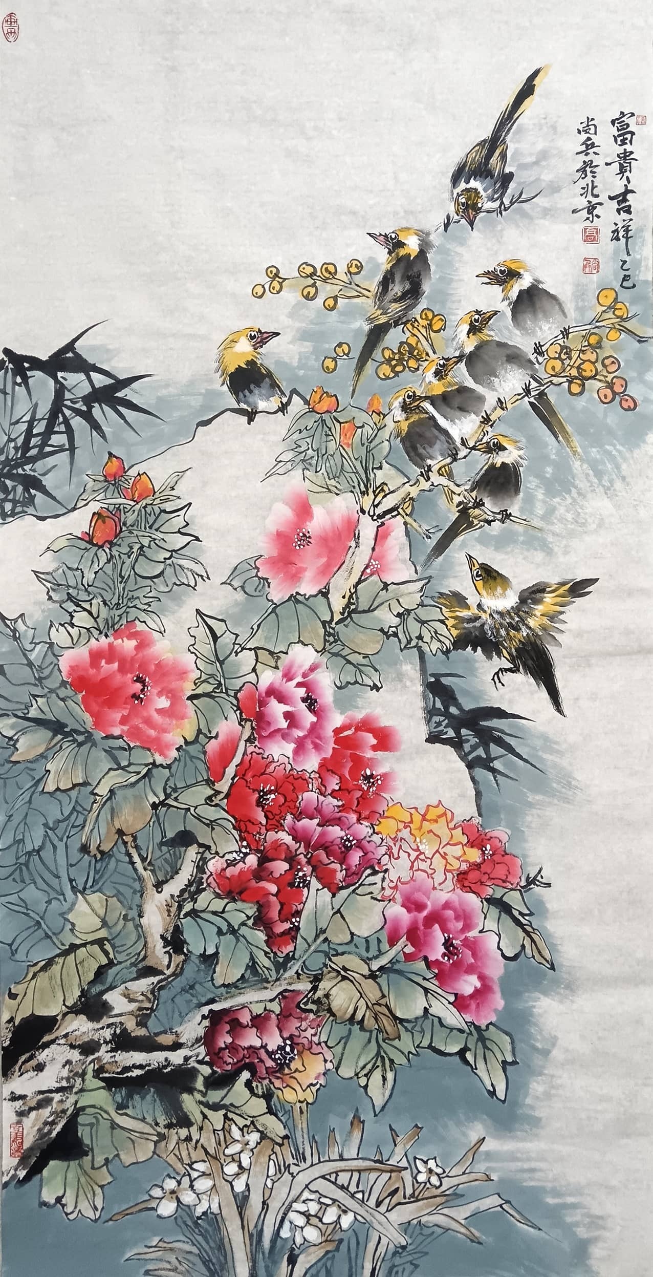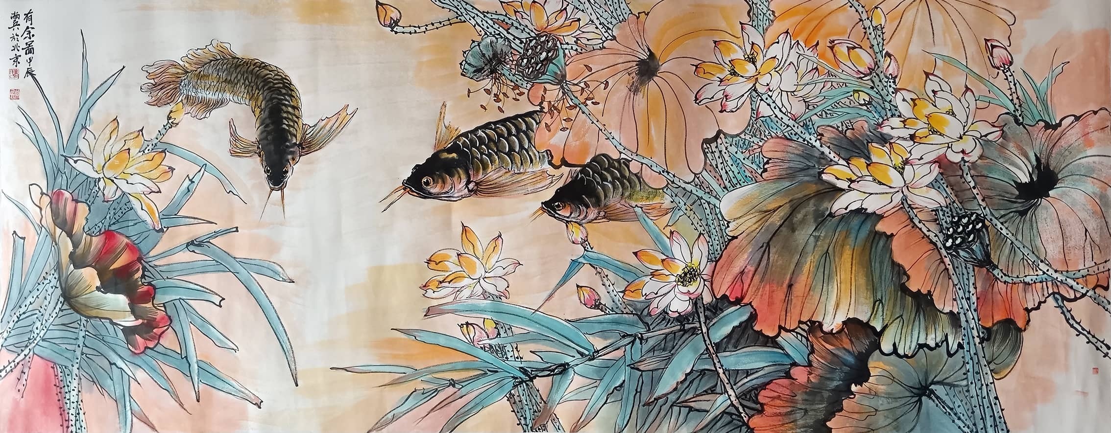 2015年作品《财源更比水源长》获全国大赛二等奖。2016年作品《年年有余》《梦里水乡》入选省展。2017年作品《清风徐来》《年年有余》《紫氣东来》参加雅昌大拍,成功获较高拍卖记录。2022年作品《大吉大利》《笑口常开》参加嘉德大拍又获新高记录。2023年作品《有余图》入省展。作品《向阳图》入展荆州“喜迎二十大”大展。2024年作品参加全国巡展,如新疆乌鲁木齐国际会展中心、甘肃兰州国际会展中心、甘肃天水会展中心、深圳国际会展中心等地成功举办巡回展,更有很多获奖证书和大展信息这里不一一道来。其双钩添色,浓墨重彩和魔力线条在恩师的教导下得到进一步的发挥,他的孔雀牡丹系列、鱼系列、莲藕鸬鹅系列和高家吉祥鸟己形成自己独特之风格。作品是全国最具收藏价值潜力的画家之一。