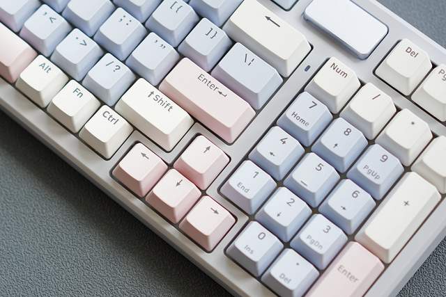 使用的高含量PBT键帽不仅耐用,还具有良好的耐打油性,即使长时间使用,键帽表面也不会出现明显的油光。