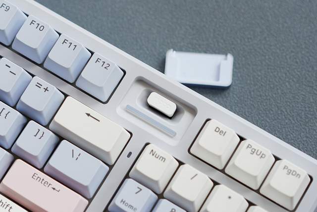 98配列带有独立的方向键,并且做了下沉,减少了误触风险,同时在边框位置还加入了指示灯,便于查看键盘的实时状态。