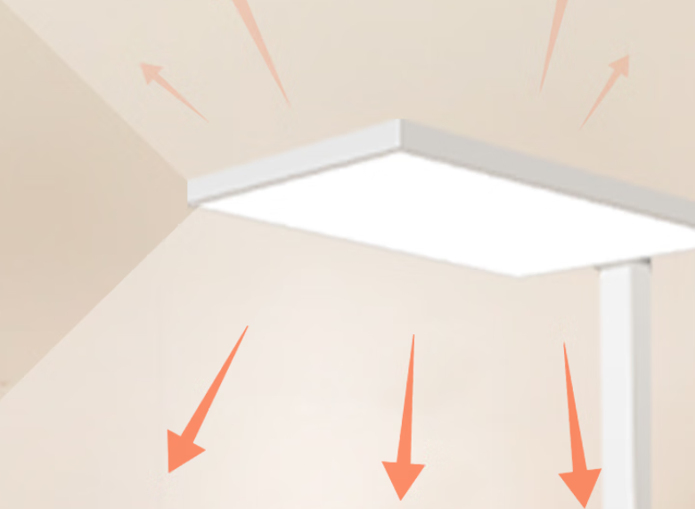 相比于直发光侧发光的光线更柔和,不易产生眩光,能有 效减少强光对眼睛的刺激,而且光线经过发射和折射后照明范围更广,能更加均匀地分布在照明区域内,减少中心区域亮而周边区域暗的情况,也有助于减轻用眼疲劳。