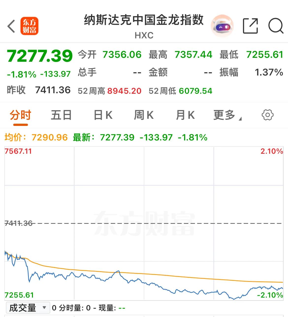 中概股同步走弱,纳斯达克中国金龙指数跌1.81%,爱奇艺跌超6%,世纪互联跌超5%,蔚来跌超4%,唯品会、陆金所跌超3%……