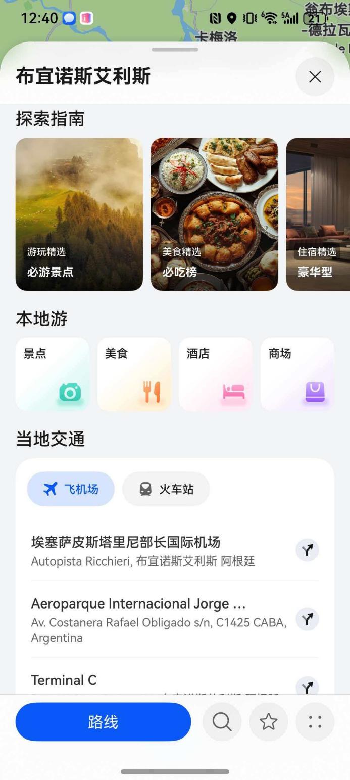 到了我第一次去的阿根廷,我的底气来自鸿蒙自带的花瓣地图,以前在使用境外的导航App时总是需要看满屏幕的英文,还得被一连串的专业术语搞得“焦头烂额”。而有了花瓣地图体验完全不一样,不仅界面是中文的,连语音播报都是亲切的母语,在异国他乡也能安全感满满。