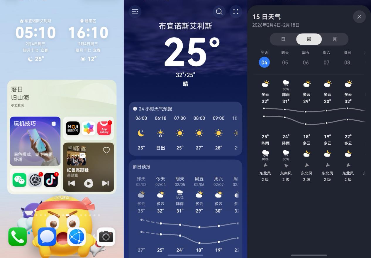 就拿我这场跨越半球的旅行来说,从查天气开始就感受极佳!华为天气的“双城天气”卡片太实用了,左边是将要到达的旅行地气温,右边是所在地的实时状况;进入华为天气,点击每日天气卡片还能看到未来15天的小时级预报,像体感温度、紫外线、降水概率等各种气象数据一目了然,带哪些衣服、什么时间段最适合外出活动,都能提前规划!