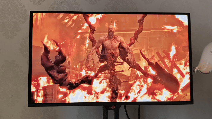 ROG超杀27电竞显示器,280Hz刷新率和0.03ms响应时间,在紧急战斗中反馈速度快。比如屏幕毫无延迟地呈现敌人动作,配合手柄瞬间反应,完全不会出现拖影或延迟,仿佛敌人就在身边。HDR400的光影细节让场景更有代入感:火光映照下的木质小屋裂纹,都真实能够感觉火光冲天的恐惧感。