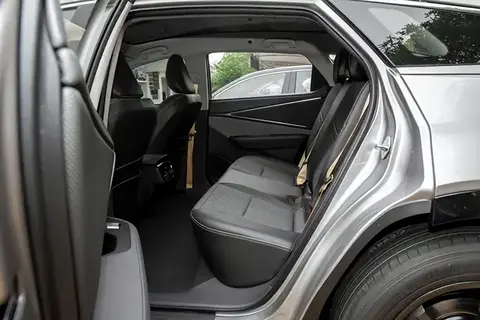 后排乘坐体验是bZ5的优势。后排膝部空间宽裕,两拳左右的腿部伸展空间可以确保长途乘坐不压抑。纯电结构让车辆拥有几乎纯平的第二排地板,两侧乘客在乘坐时腿部可以自由伸展,而中间乘客因为没有地台隆起,也能获得较舒适的坐姿。