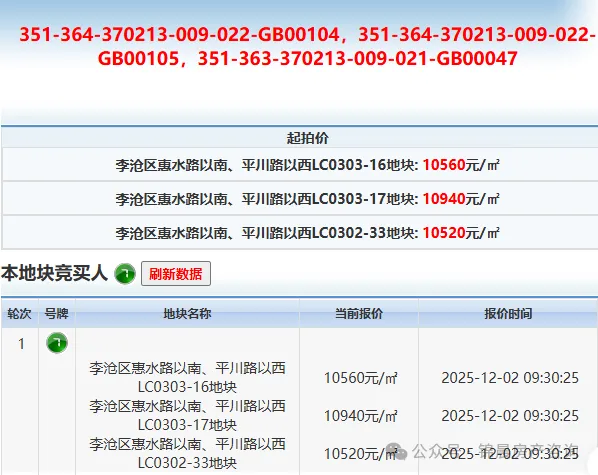 12月2日上午9时30分,青岛市国有建设用地使用权网上交易系统显示,李沧区惠水路以南、平川路以西的三宗地块,被青岛海创置业有限公司,以20.19亿元的底价收入囊中。