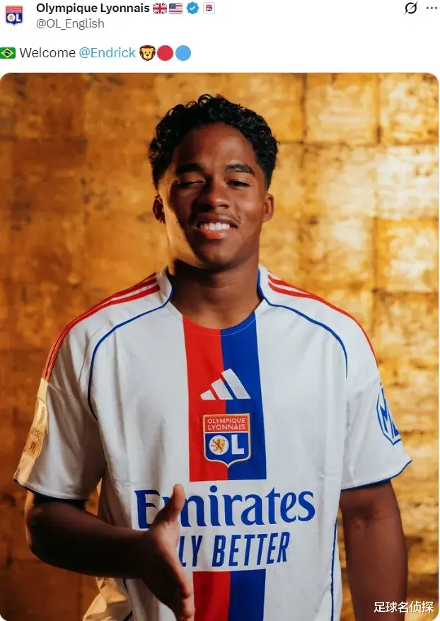 官方:里昂宣布从皇马签下了恩德里克。交易性质为租借直到本赛季结束,不包含买断条款。