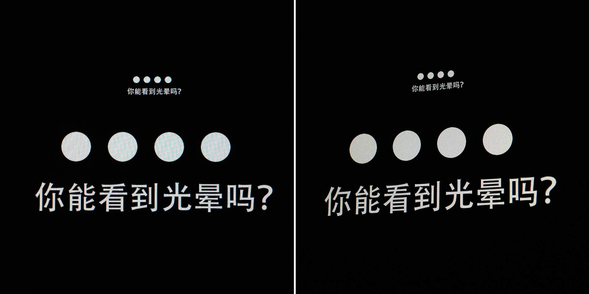 PS:光晕现象,当一个明亮的小物体(如鼠标指针或字幕)处于黑色背景上时,由于背光分区大于像素,光线不可避免地会溢出到周围的黑色区域,形成一圈淡淡的白雾状阴影。