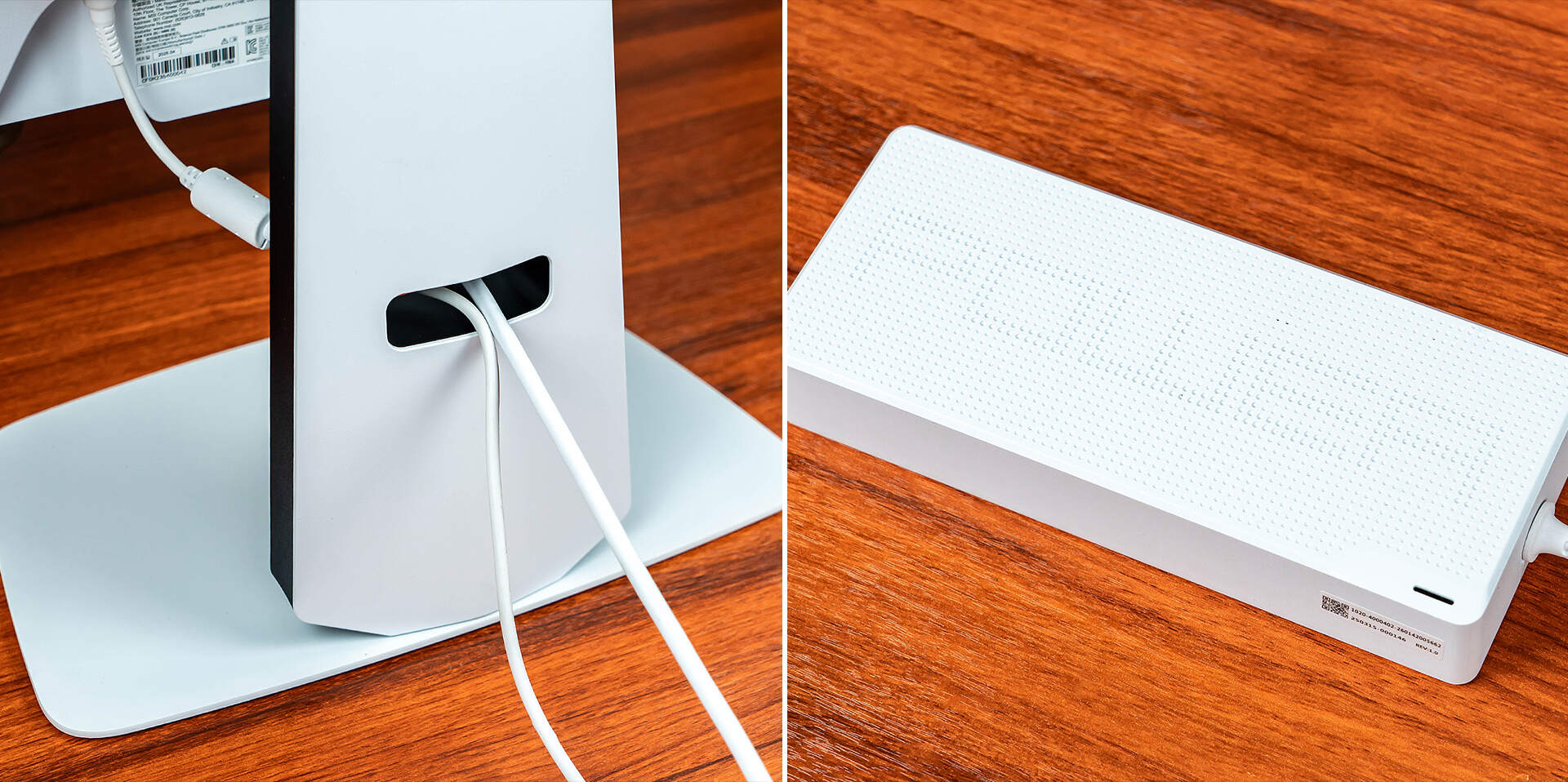 微星MPG 274URDFW E16M白龙的白色配色方案做的很彻底,数据线、电源适配器都做成了白色。