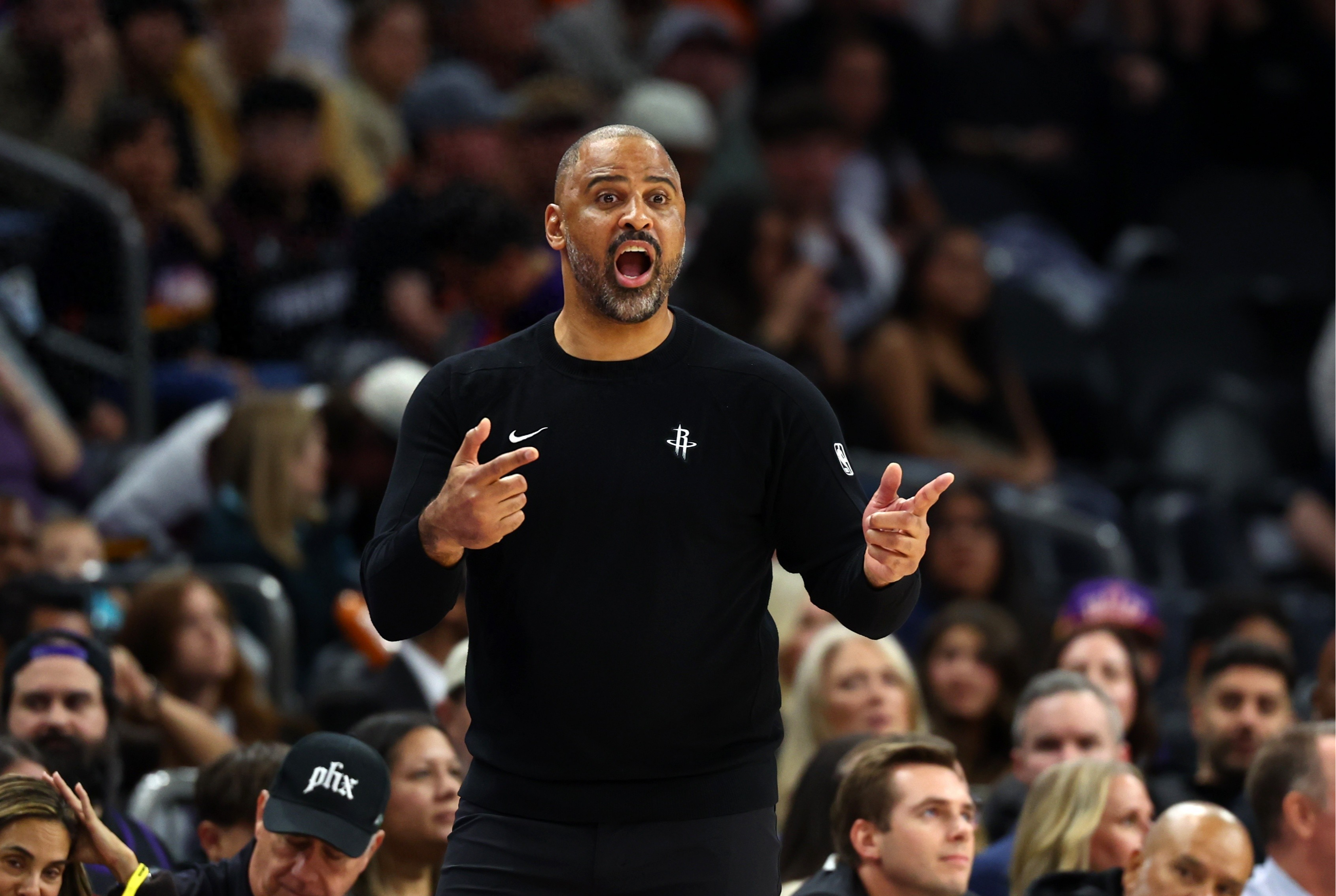 在乌度卡想要进攻还是防守的阶段,分阶段的上阿门、奥科吉和谢泼德,火箭明显存在攻防不均衡的阵容。