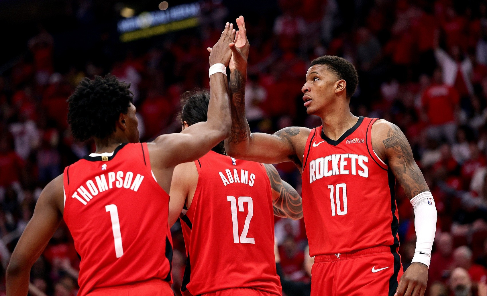 目前,火箭的首发阵容乃至终结阵容,从目前来看,基本有三人是确定的,分别是杜兰特、申京和小贾巴里史密斯,首发阵容中阿门·汤普森是确定的,但是在终结阶段,在高端局比赛来看,并不确定。