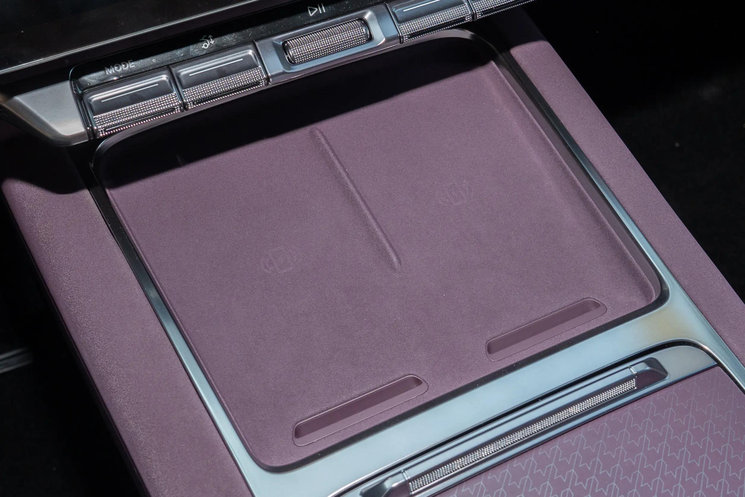 储物空间也规划得特别细致,全车足足有40处,简直是“带娃收纳神器”。前排门板扶手盒能放下带壳的保温杯,中控台下的隐藏储物格,放我的6.7英寸大屏手机刚好。后排扶手箱里有Type-C接口,支持27W快充,孩子的平板充电不用抢前排的接口。电控密码手套箱有18L,放个15英寸笔记本电脑再加上文件、证件都没问题,密码和车机账号绑定,放贵重物品也放心。