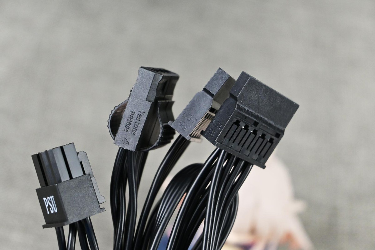 长城SPARK 850W原配线材和之前华夏系列基本相同,包含24PIN x1、CPU 4+4PIN一分二 x1、12V-2x6(12VHPWR) x1、PCIE 6+2PIN一分二 x1、单口PCIE 6+2PIN x1、2SATA+1D口线x3,基本满足日常装机需求;线材均为黑色扁平线,各线材插头基本带有UL安全标识,而12V-2x6是支持600W输出能力的,600W字样直接写在插头上,值得肯定。