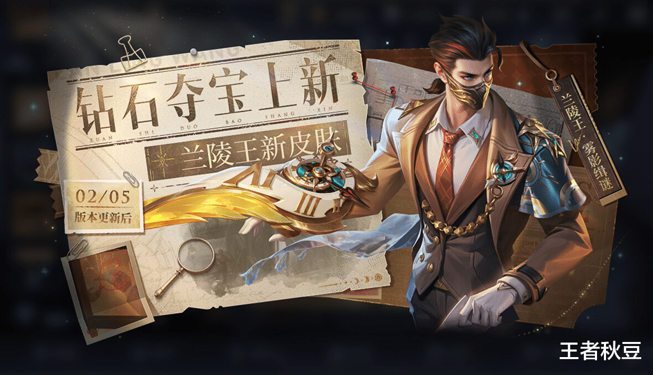 兰陵王-雾影缉谜将于2月5日更新后上架钻石夺宝商店,勇者品质,通过一颗王者水晶兑换。