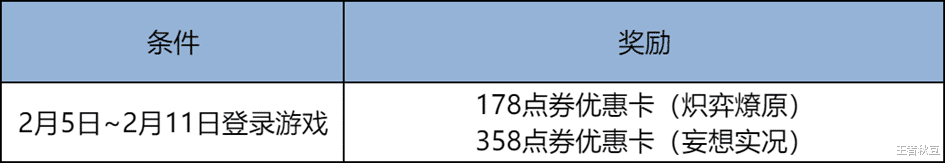 累计充值活动时间:2月5日-2月8日,充值档位最低10点券,最高2000点券,今年福利皮肤非常多,年限就6款皮肤,建议想买皮肤的小伙伴可以直接充到2000点券最高档,领取完全部赠送奖励。