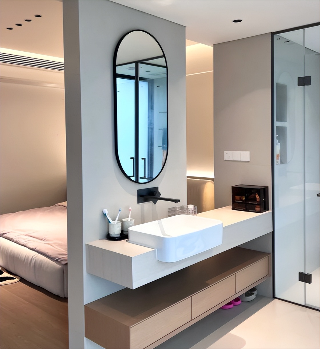带主卫之后,早起就不用担心吵到对方了,我老公晚睡的话,就用外面的卫生间。
