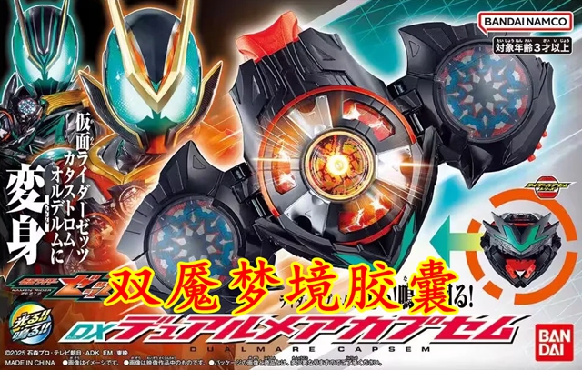 假面骑士泽兹的过渡双模式形态,是使用双魇梦境胶囊变身而成。和此前的球体胶囊不同,双魇胶囊是类球体形状,然后展开,中间是流线型核心,左右是圆盘型,整体造型像一艘飞船。此外,肩带变成了金黄色,看来是换变身器了。