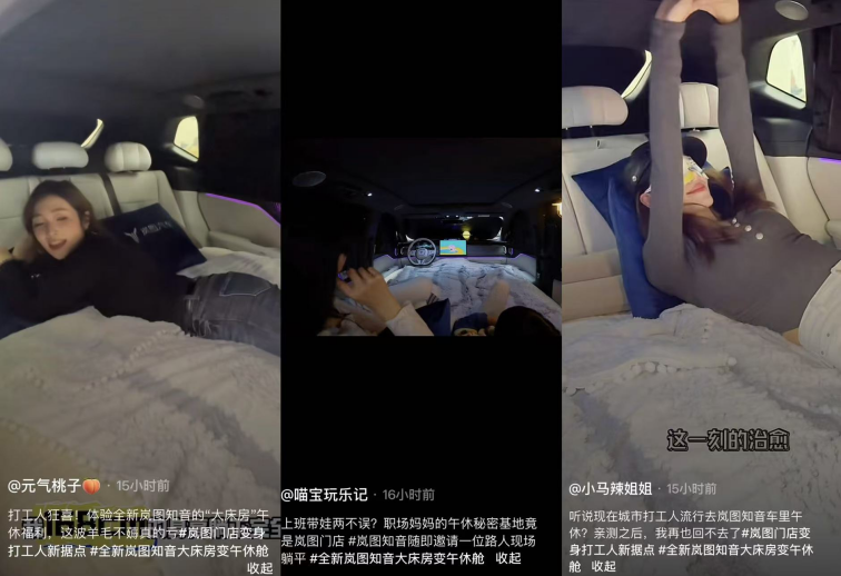 社交平台上早已掀起打卡热潮:“在岚图里午休1小时,续航没掉血,我满电了”“这哪是试驾,分明是发现了职场生存秘籍”“建议HR直接采购作为公司福利”。从销售展厅到都市生活驿站,岚图的这波操作精准捕捉到当代职场人的核心诉求。
