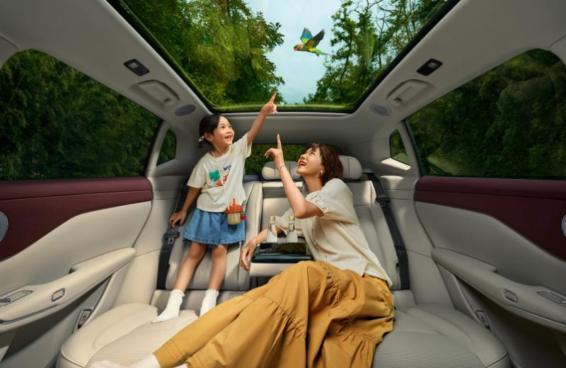 除了化身打工人“午休新据点”,全新岚图知音的百变空间还能满足用户多元化的生活需求。放倒前排座椅,座舱秒变“亲子娱乐房”,成为宝妈带娃逛街的临时歇脚地,亲子共赏电影、互动游戏的温馨场景尽显家庭温度。二排放倒连接后备厢,搭配天幕与软垫,又能化身“露营大床房”,让城市家庭随时解锁“移动星空营地”的浪漫体验。