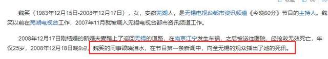 台里的同事接到消息,谁都不信。第二天晚上,节目播出时,第一条新闻,就是播报魏笑去世的消息。屏幕里,她的搭档眼眶通红,带着哭腔念完了那几句话,说这是自己“最不愿意播报的一条新闻”。