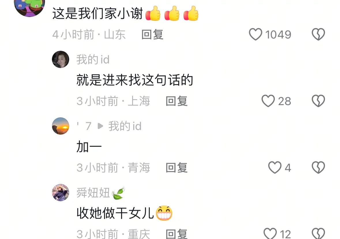 评论区的网友也因为这句话对她有了改观,有人夸她温暖,有人夸她情商高,也有人起哄让她认小谢当干女儿,还有不少夸小谢的,说她是宝藏女孩,什么都会,请她当保姆真是太值了!